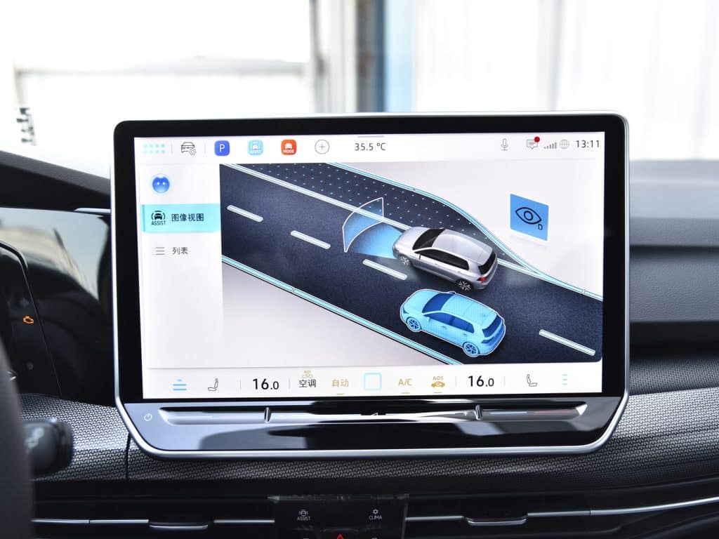 L’intérieur de la Golf met l’accent sur la technologie embarquée : combiné digital 10,25", grand écran central 12,9", compatibilité CarPlay/HiCar, assistant vocal, climatisation automatique, sièges sport en similicuir, éclairage d’ambiance 30 couleurs, régulateur adaptatif, et conduite assistée de niveau L2. L’équipement de sécurité est également complet avec radars avant/arrière, caméra de recul, alerte de franchissement, freinage automatique, et 6 airbags.